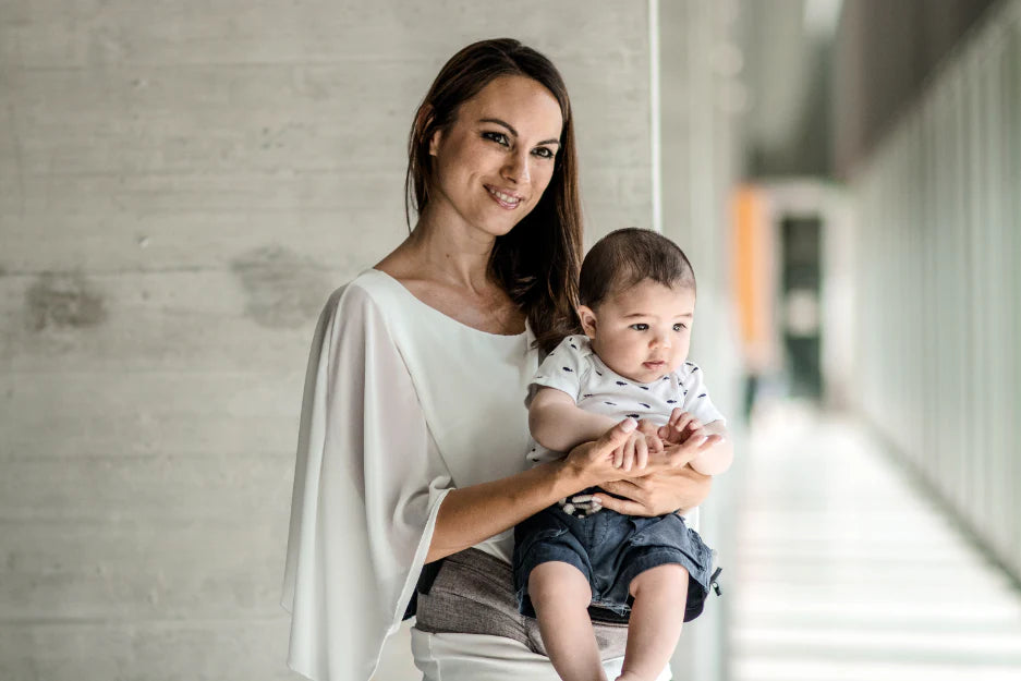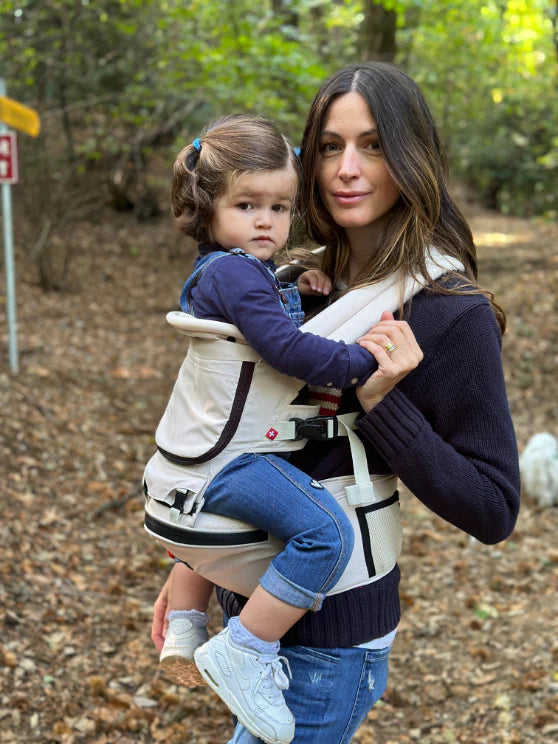 The ergonomic design of our innovative baby hip seat carrier ensures that your baby’s hips are always in the optimal “M” sitting position, with knees even at hip level. Parents' are kept comfortable, too, thanks to wide waistband providing full lumbar support. Offers 6 different carry options, multiple safety features and extra storage space for yours and your baby's essentials.