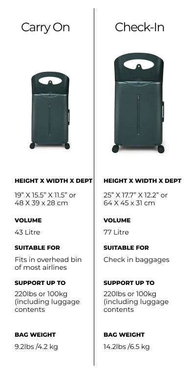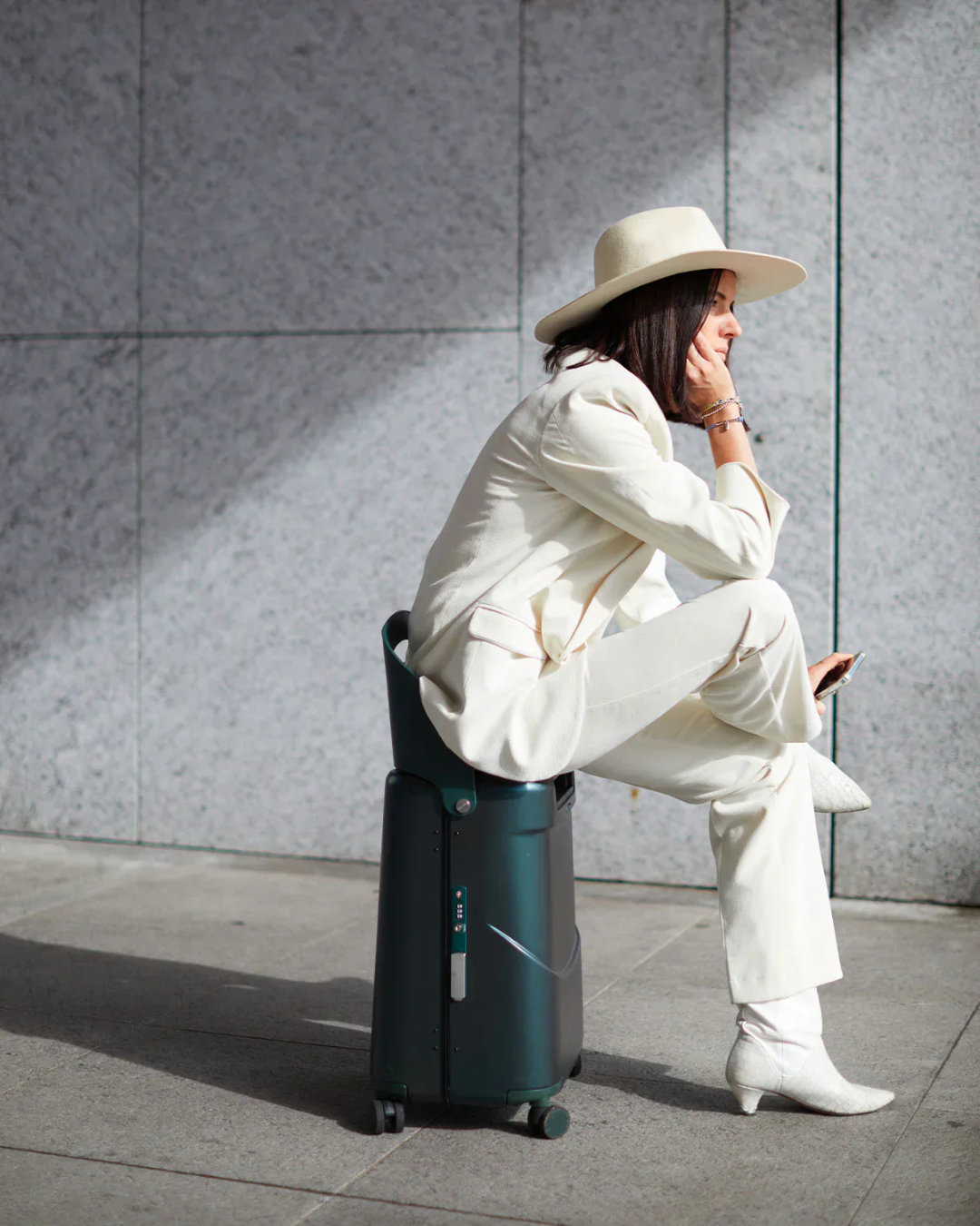 Regular price $299.00This carry-on was designed to do more than just hold your essentials — it supports you, literally. With a patented built-in seat that holds up to 220 lbs, it offers a quick seat for adults, a safe ride for kids and a stable spot for stacking other bags. A built-in safety belt adds peace of mind, and its compact size fits in most overhead bins (always double-check with your airline). A smarter, more comfortable way to move through every leg of your journey.